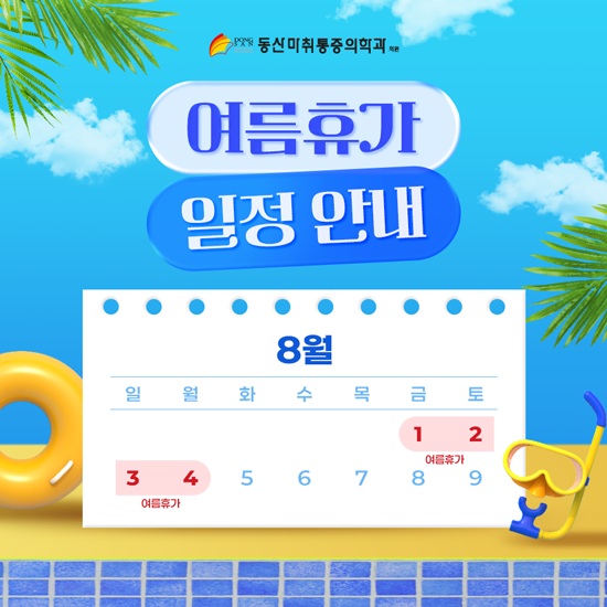 8월 1일(금) ~ 8월 4일(월)은 여름휴가 휴진입니다.