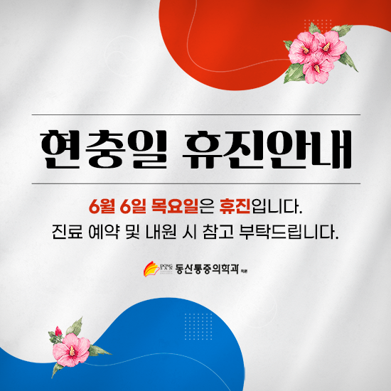 6월 6일 목요일 현충일은 휴진입니다.