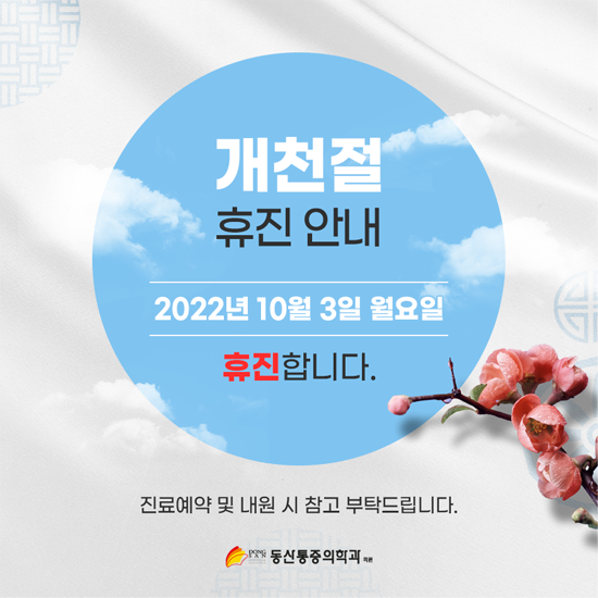• 토  요  일09:00 ~ 13:00 (12:30 접수 마감)
