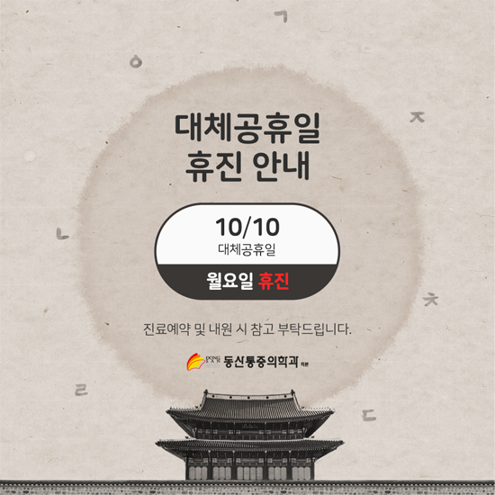 10월 10일 월요일 대체공휴일은 휴진합니다.