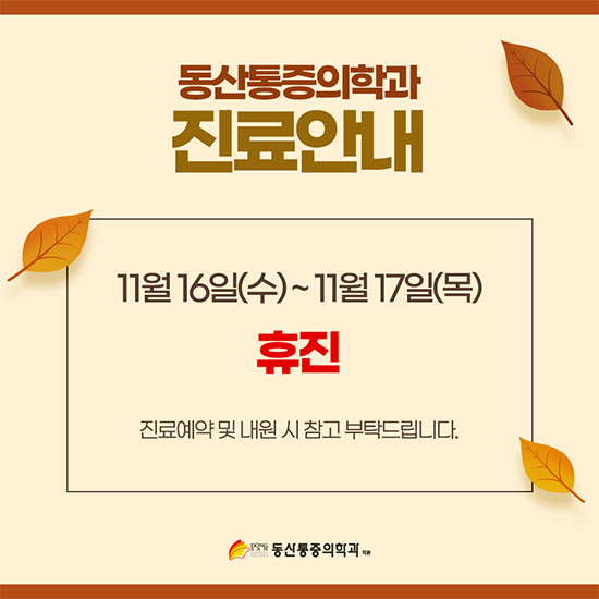 11월 16일(수) ~ 17일(목) 휴진합니다.