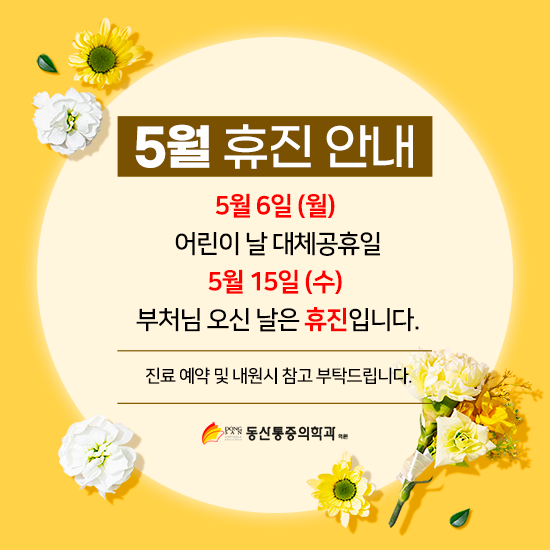 5월 15일 수요일 부처님 오신날은 휴진입니다.
