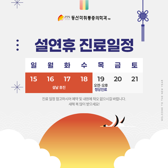 2월 16일(월) ~ 2월 18일(수)은 설 연휴 휴진이며,
